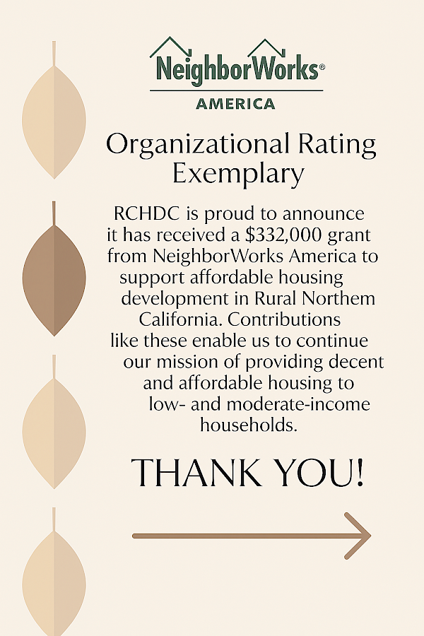 Rural Communities Housing Development Corporation Receives NeighborWorks America Grant to Invest in Community Development and Affordable Housing in Rural Northern California
